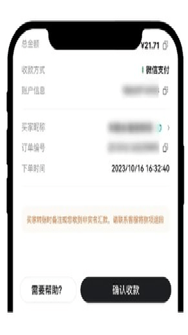 2、买家付款后,请您仔细核实,确认款项到账后请务必点击【确认收款】,才能放币给买家,交易顺利完成。
