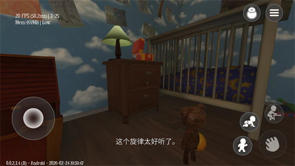 梦意杀机游戏(Among The Sleep)的增强版在视觉、数字画册和整合音轨方面都有所提升,加入了更多睡衣供你选择,有更复杂的谜题和更精彩的游戏效果,新增的对白,以及一个全新的博物馆关卡。你可以在这个关卡中探索幕后故事,体验在正式游戏中被移除、从未对外披露过的影像片段和设计概念。本游戏通过渲染气氛和探索过程来营造恐怖气氛,而非通过得分或战斗系统进行体现。在《梦意杀机》中,你十分脆弱,惶恐不安,并试图搞清楚这个世界是怎么回事。