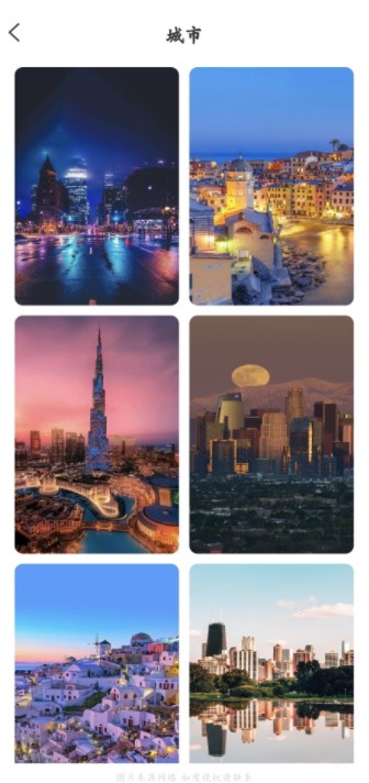 1、壁纸分类:软件将壁纸资源分类,包含护眼壁纸、美食壁纸、城市壁纸等类别。