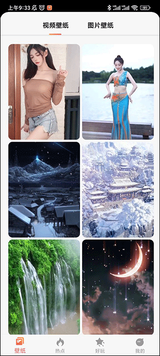 1、界面展示各类有趣动态壁纸,供用户体验和挑选;