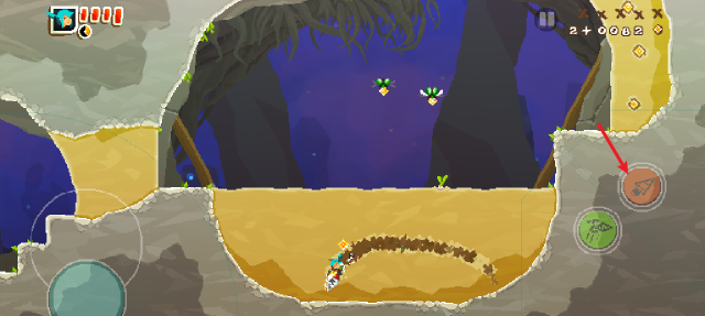 2、右侧的红色按钮可以使用钻头来挖掘和攻击。