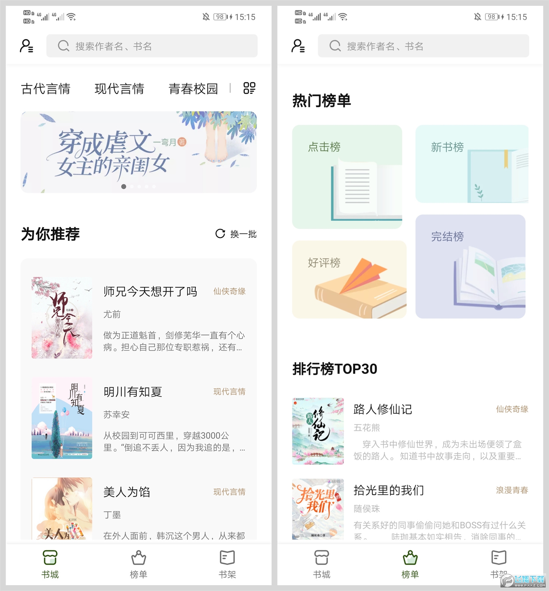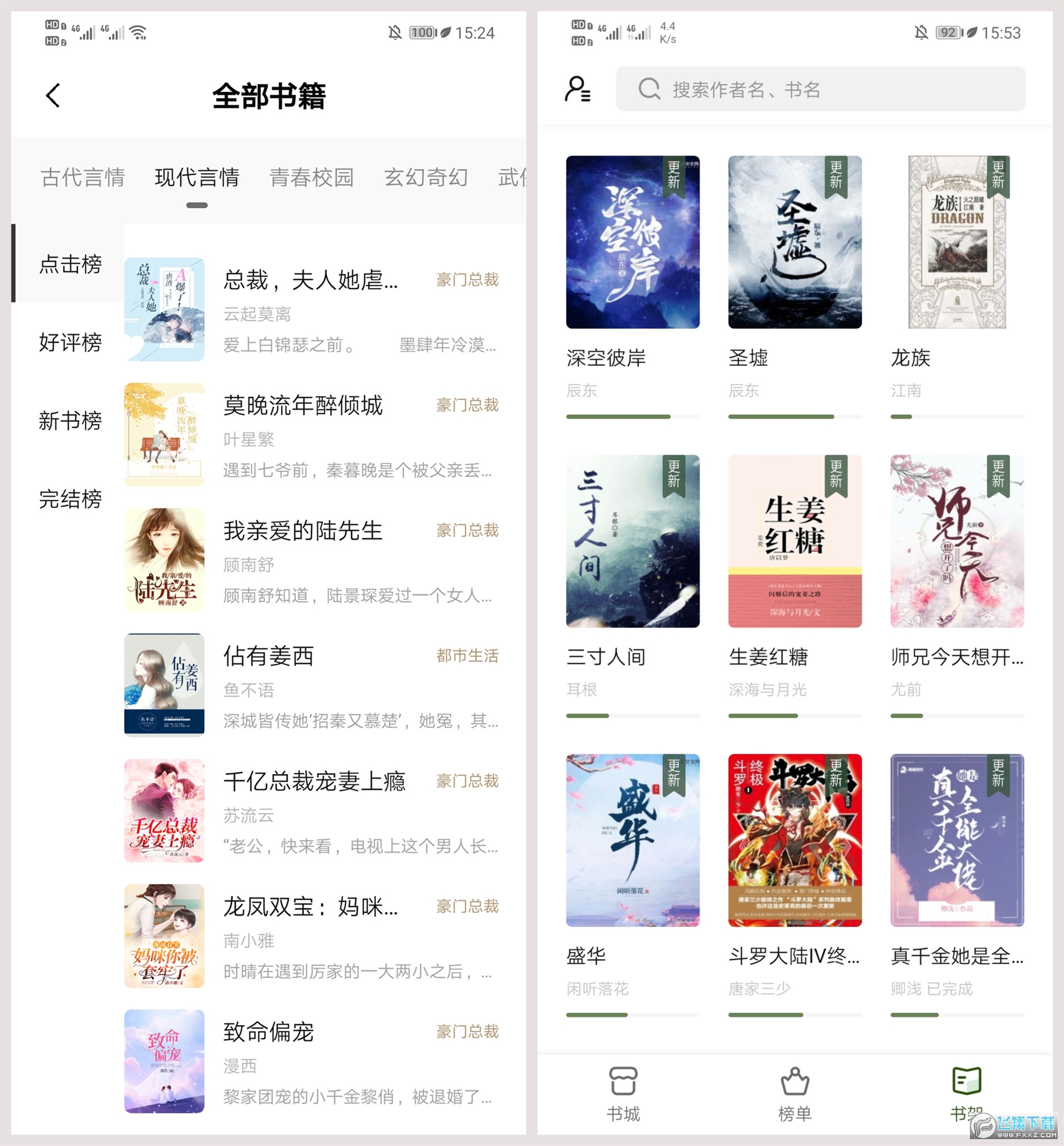 1. 精选全网各类榜单:玄幻、武侠、言情、名著、同人等,总有一类是你喜欢的~