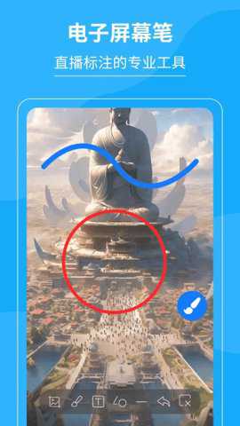 使用电子屏幕笔。在软件界面上选择画笔工具,然后可以通过电子屏幕笔在屏幕上进行标注、画图、写字等操作。