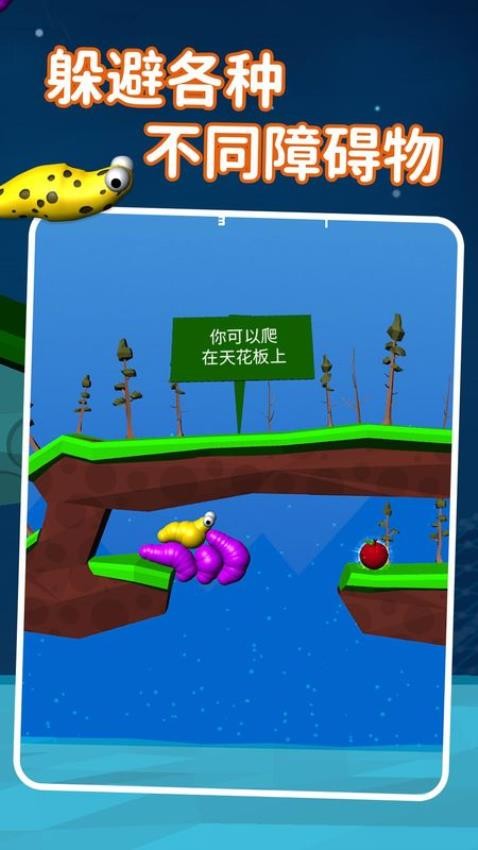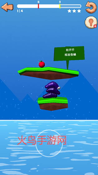 5、当面对高台障碍时,只需松开手指让鼻涕虫释放一个蚕蛹,随后利用叠高方式攀爬而上。