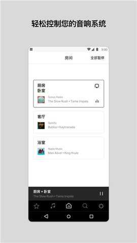 1、 使用SonosS1手机版,您可以使用智能手机、平板电脑或计算机在每个房间中流式播放不同的歌曲。