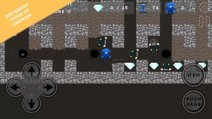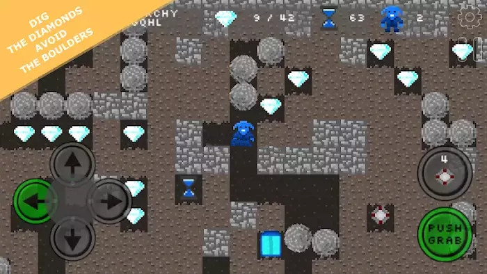 1、挖土得到钻石,打开出口,不同类型的敌人有自己的行为,避免破碎的巨石或用它们粉碎你的敌人;
