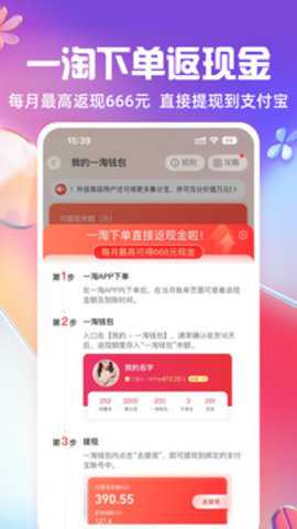2. 用户可以通过一淘获取丰富的购物返利,购物后返利到账速度快,让用户享受到实实在在的优惠。