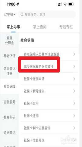 在社保 中点击【城乡居民养老保险转移】进入