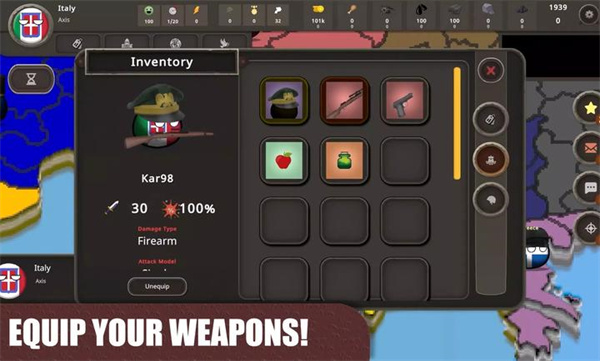 Countryball: World 1930是一款二战题材的策略战争游戏,游戏采用了卡通的画风,将一个个的国家用小球表现出来,而你要做的就是利用你的智慧帮助你选择的国家称霸整个世界,游戏当中有着十分丰富的内容,你可以尽情的游玩。
