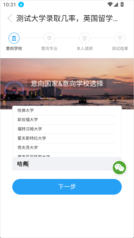 3、输入意向国家与目标学校名称。