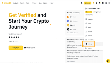 1.登录弊安钱包账户,将鼠标悬停在个人资料图标上,然后点击【设置】。