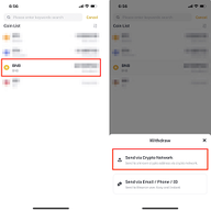 选择要提现的加密货币:在提现页面,找到你想提现的加密货币,这里以 BNB 为例。选好后,点击【通过加密货币网络发送】 。