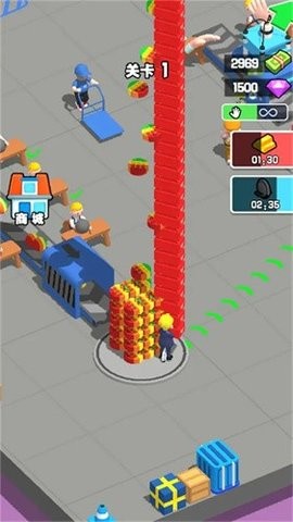 由于工厂人手不足,作为老板的玩家还需要亲自战斗,将建造的货物堆叠在一起,并运送卡车来赚取利润。随着玩家继续运营,你可以用更多的钱来建造生产线和工厂。