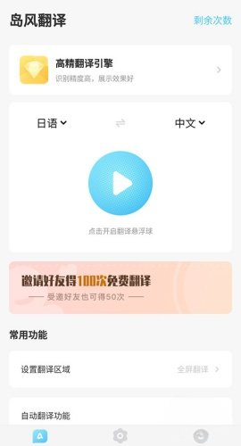 第一步:点击岛风游戏翻译APP首页翻译悬浮球