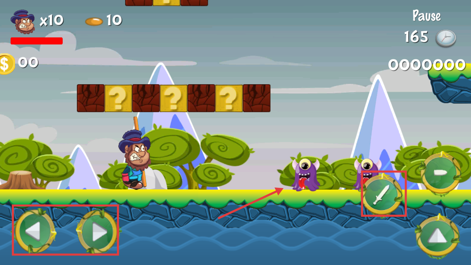 2、在关卡中,操控角色左右移动,遇到敌人时,点击攻击按钮,用武器去击败它们。
