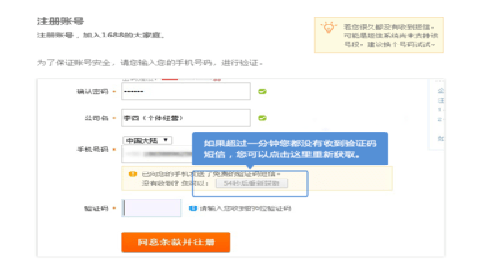 如果超过一分钟您都没有收到验证码短信,您可以点击这里重新获取。
