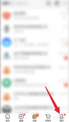 第一步:进入阿里巴巴APP,在主页下面点击我的。