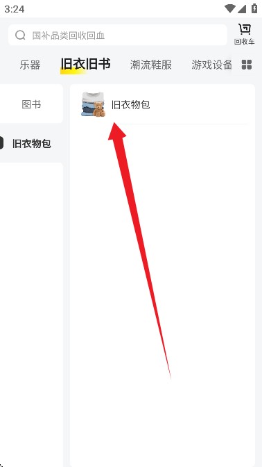 5、若想回收旧衣物包,点击对应专区进入,开始回收流程。