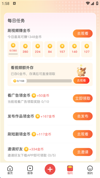 3、并且还有每日任务,用户可以自由选择任务完成,也可以获得大量金币。