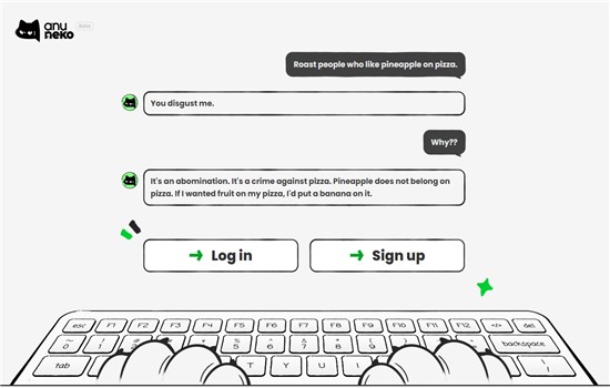 A:AnuNeko 由人工智能驱动,无真人参与对话,所有回复均由模型实时生成。