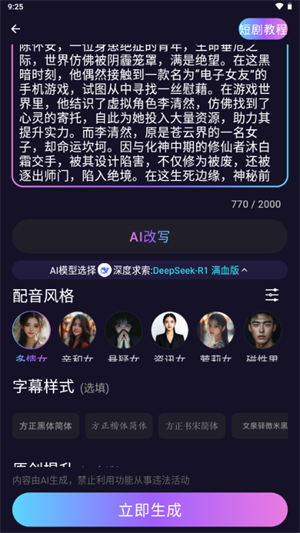 2、智能配音可选择不同音色,调节语调情感,让视频更具感染力。