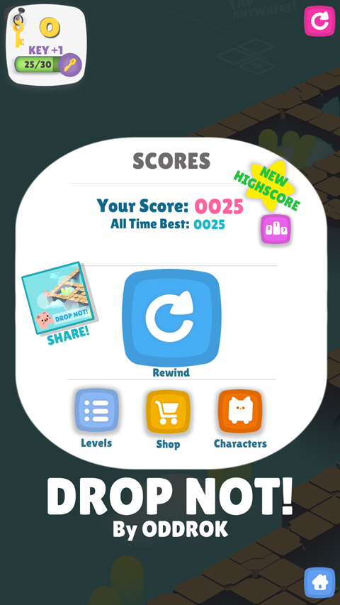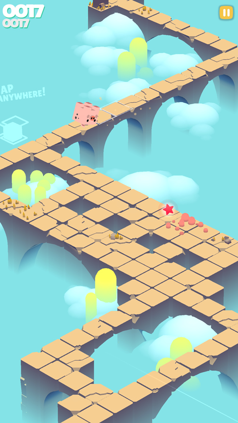 DROP NOT!是一款十分悠闲的闯关游戏,游戏中你将身处在百米的高空当中,你脚下的一切都是由方块构成的,通过控制小狗前进和滚动的方向来进行通关,保护小狗不会掉下去,一路上还有着各种陷阱需要你眼疾手快才能够通过。