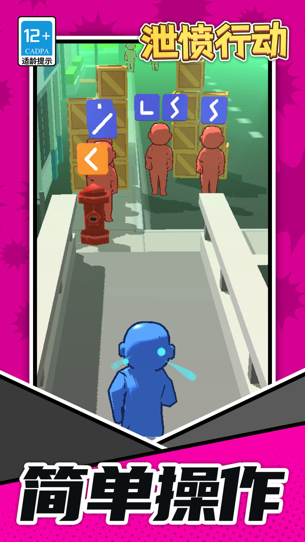 泄愤行动游戏的玩法很有意思,玩家在前进的路上,会遇到各种情况,例如向你极速驶来的汽车,或者站成一排阻碍你前进的敌人。要想躲避汽车或者越过人墙,就要根据各个物品头上的线条图案,在规定的方框里面画出来,就可以成功通过哦!