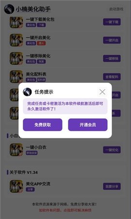 2、如果用户拥有卡密,可以直接输入进行激活,或者通过完成任务来激活会员,享受更多的美化功能。