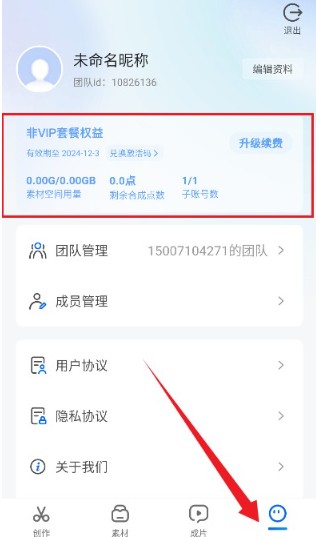 6、个人中心可查看账户资料、服务套餐,也能进行团队管理设置。