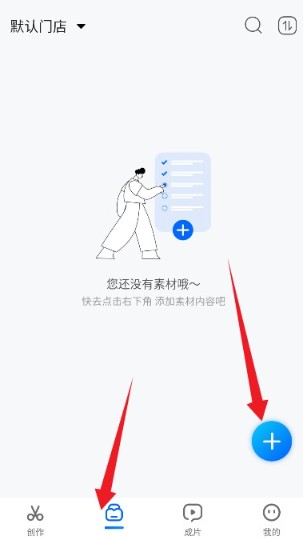 4、进入素材管理页,通过底部添加按钮,导入设备内的多媒体文件。