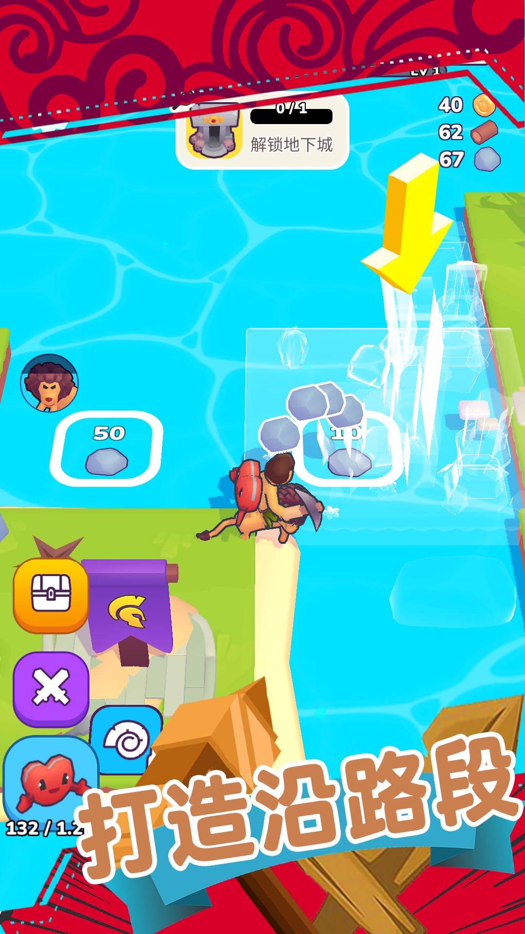 2、遇到河流别硬闯,留意地图上发光的石头,收集足够数量丢进河里就能造路。