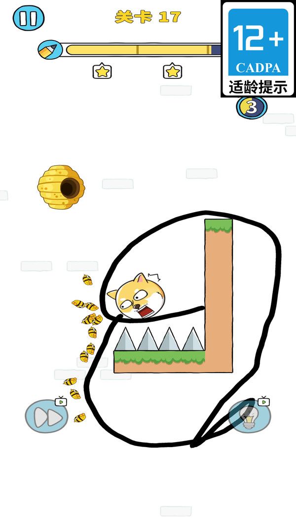 1、通过画线保护狗头,关卡是要防止蜜蜂的攻击;