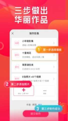 分享互动:用户可以将制作好的小年糕相册分享到社交平台,浏览他人的相册获取灵感。