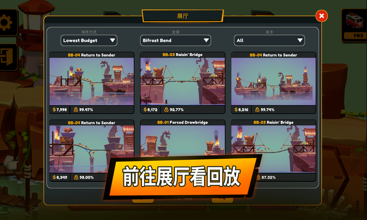1.游戏内呈现多种风格迥异的桥梁建造样式,每一种都独具特色,带来丰富视觉体验。