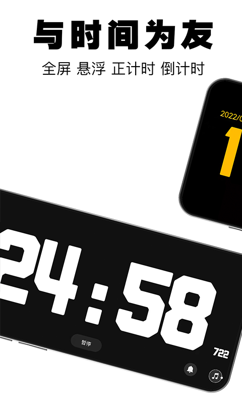 全屏大数字时间展示,强化时间意识,降低分心可能,提升做事效率。