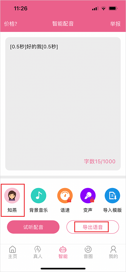 5、可自主发布作品,让他人也能使用自己录制的声音。