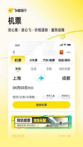 飞猪旅行app是由杭州淘美航空服务有限公司打造的全新旅游软件,用户通过软件可以购买,大巴汽车票、飞机票、火车票、酒店等等都可以,其中里面的价格非常优惠,支持查询、上车补票、在线退改签等等,使用起来非常便捷,给你带来不一样的出行体验。