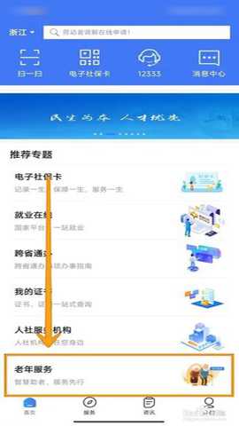 启动掌上12333app,并启用【老年服务】功能。