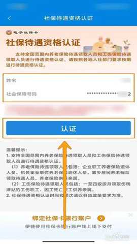 随后,请输入【姓名】与【社会保障号码】,并点击【认证】按钮以启动社保待遇资格认证流程。