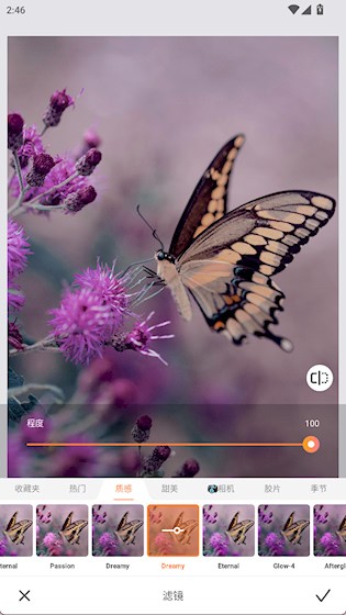 3、选择一款滤镜,调整程度后保存