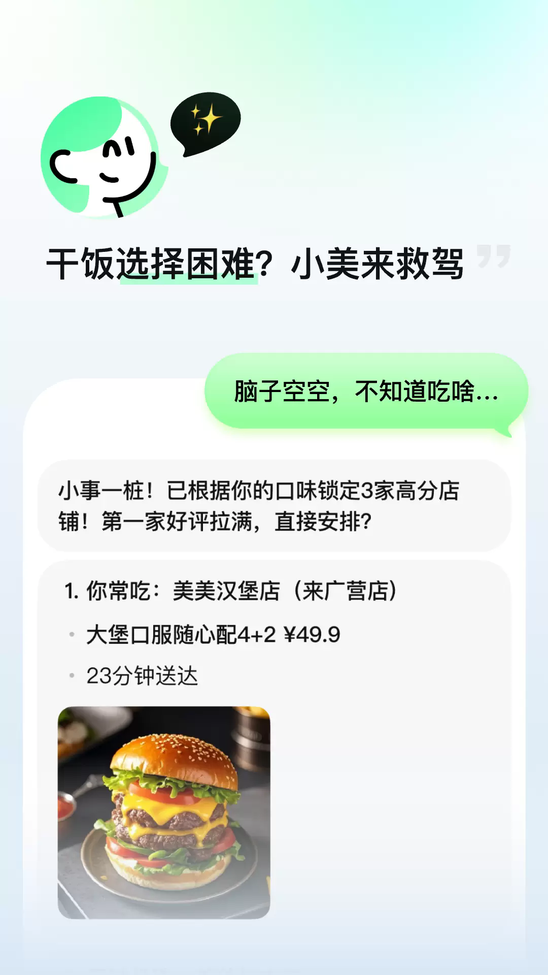 小美app是一款ai生活小秘书软件,软件中有着海量的实用功能等你体验,已全面接入美团平台,不管是点外卖还是订酒店,都可以快速为你推荐最佳方案,对软件感兴趣的话不妨点击下载试试!