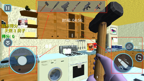 1、扮演破坏者进入房屋,使用各类武器摧毁家具与设施,完成关卡目标获取奖励。