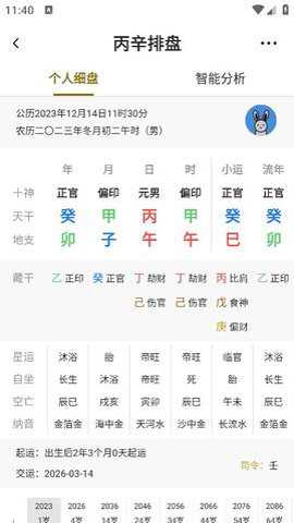 2. 命理学说:丙辛排盘涵盖了多种命理学说,如五行缺火补土等。用户可以通过这些命理学说更全面地认识自己和他人,并预测未来走势。