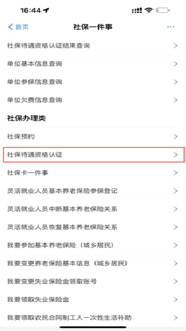 1、【首页】-【社保】-下滑页面-点击【社保待遇资格认证】