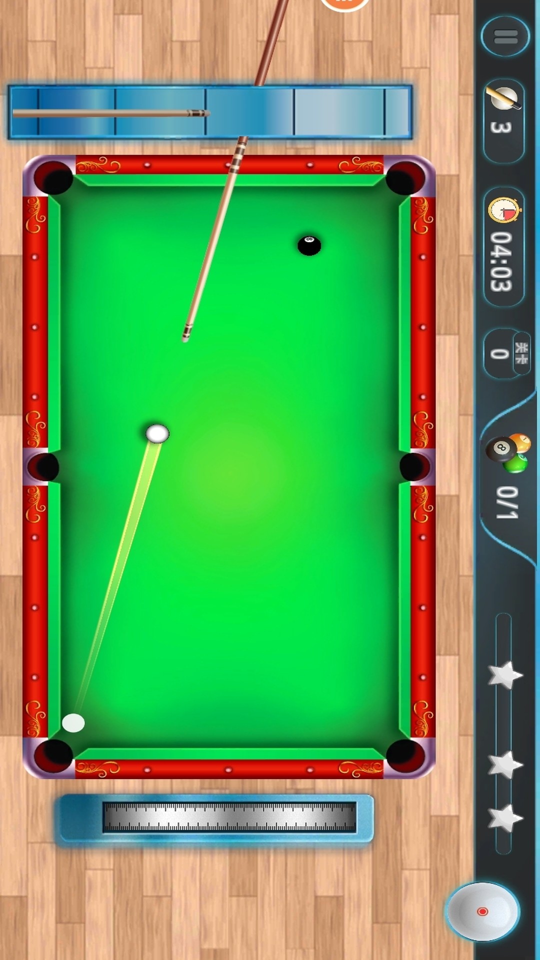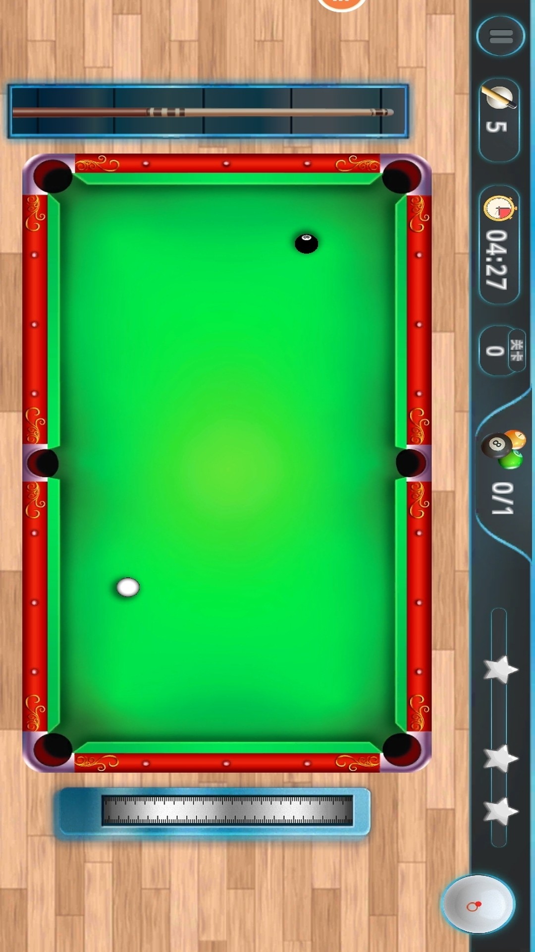 1. 通过触屏控制击球方向,滑动调节力度,长按可添加左右旋转改变白球走位。