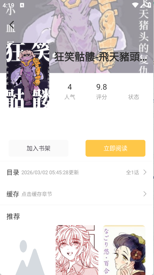 4、用户点开想看的漫画进入详情页,点击立即阅读。