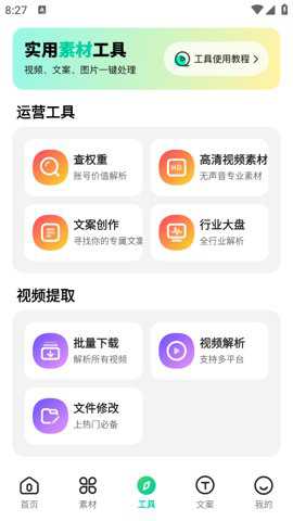 链接复制后打开天天素材app,并在工具界面中点击批量下载。