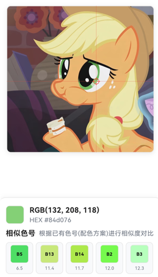 将中心点对准颜色,就能吸色,下方会显示色号。
