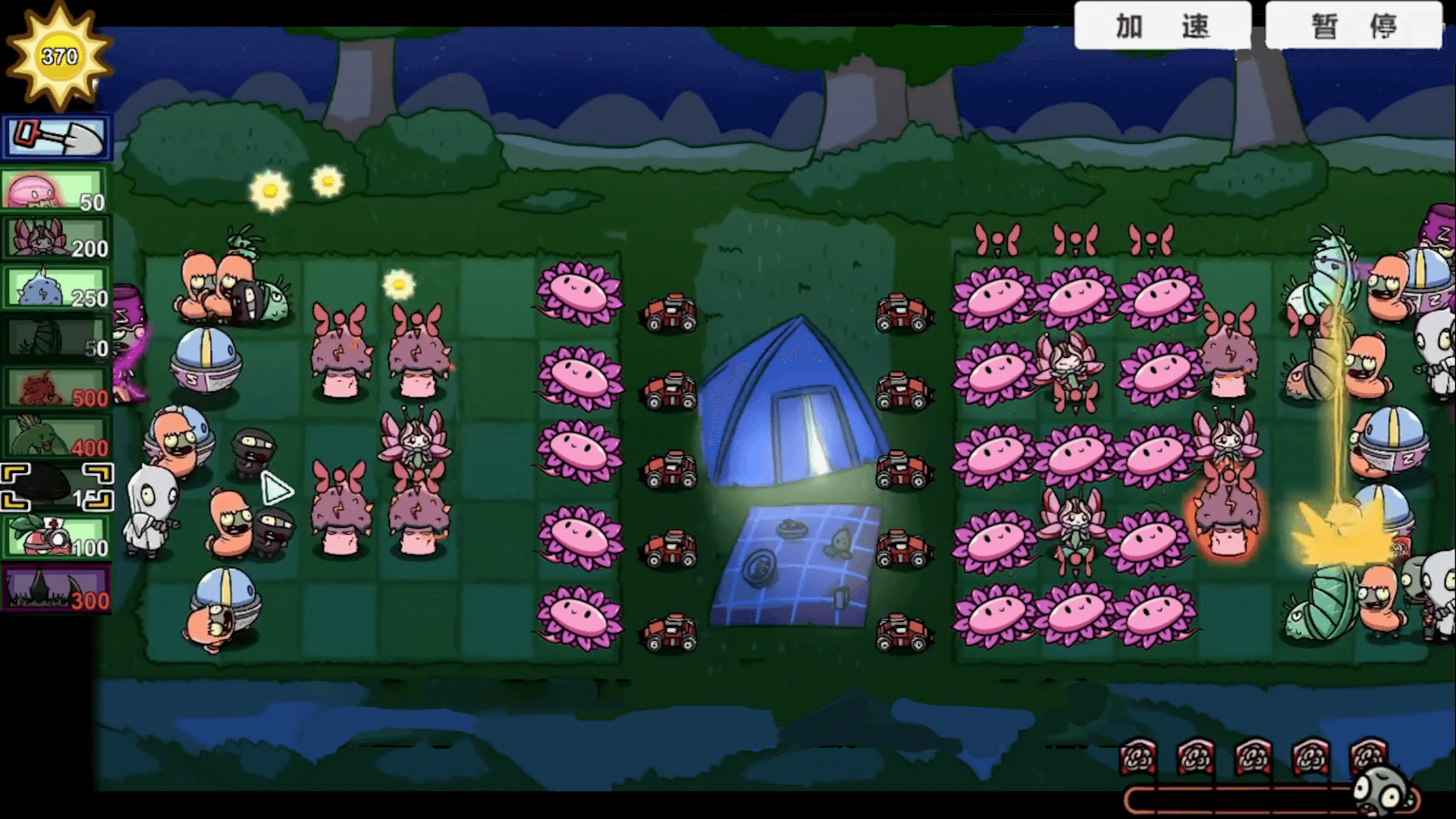 2、消耗阳光或特殊道具解锁高阶融合植物,需合理规划解锁顺序应对不同怪物。