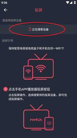 接着app就会自动搜索电视设备,等待几秒钟即可!
